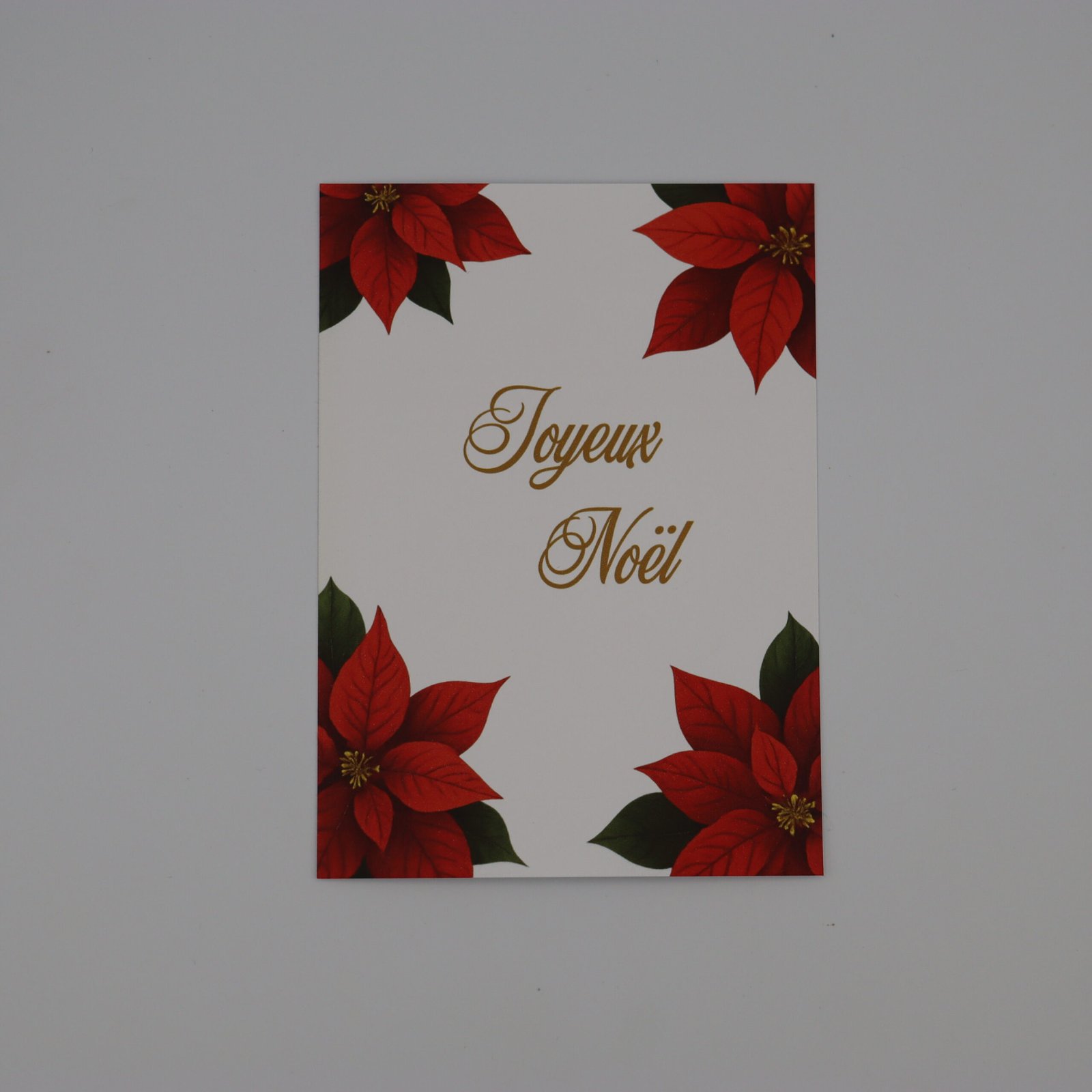 Carte de Noël – Collection Éclat Poinsettia – A6 simple ou pliée – papier vélin 200 g.