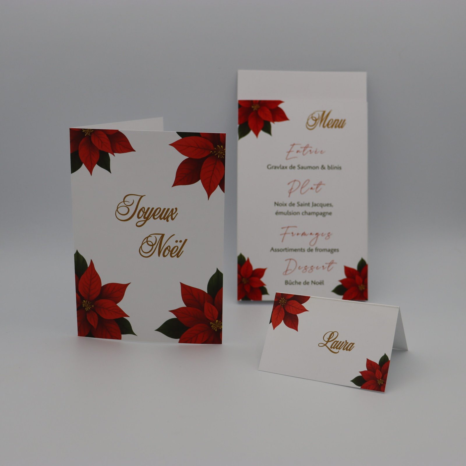 Carte de Noël – Collection Éclat de poinsettia: élégance et tradition pour vos vœux
