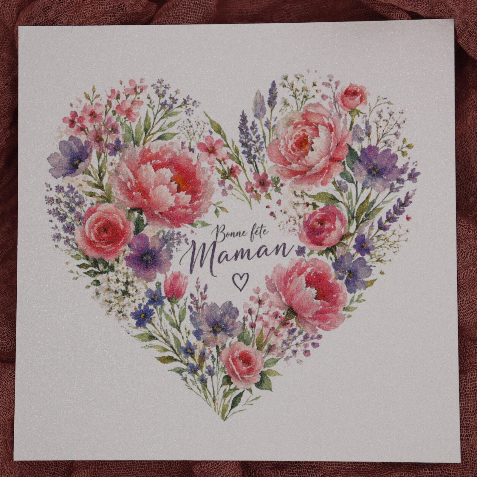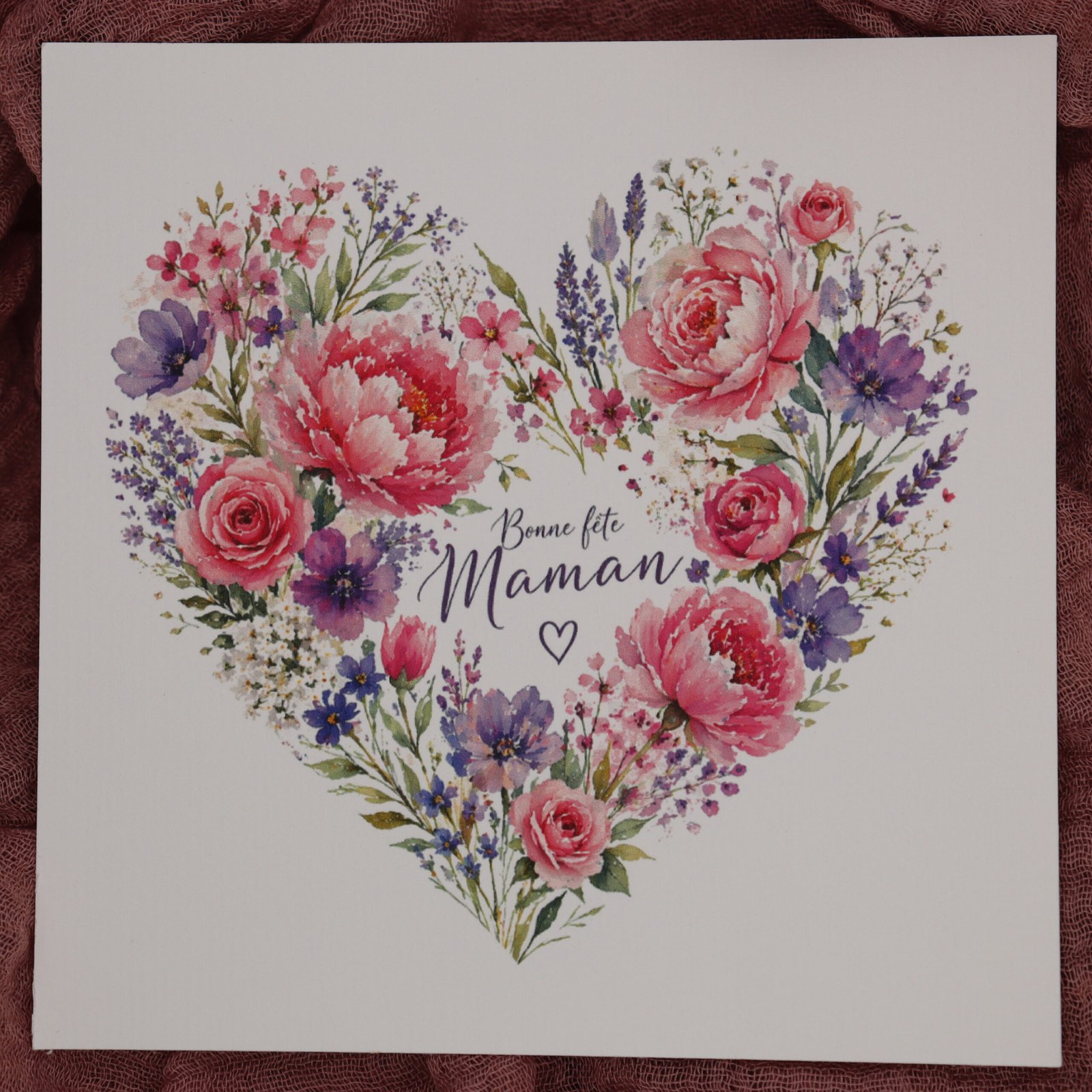 Carte fête des mères – Cœur fleuri: un cœur rempli d’amour