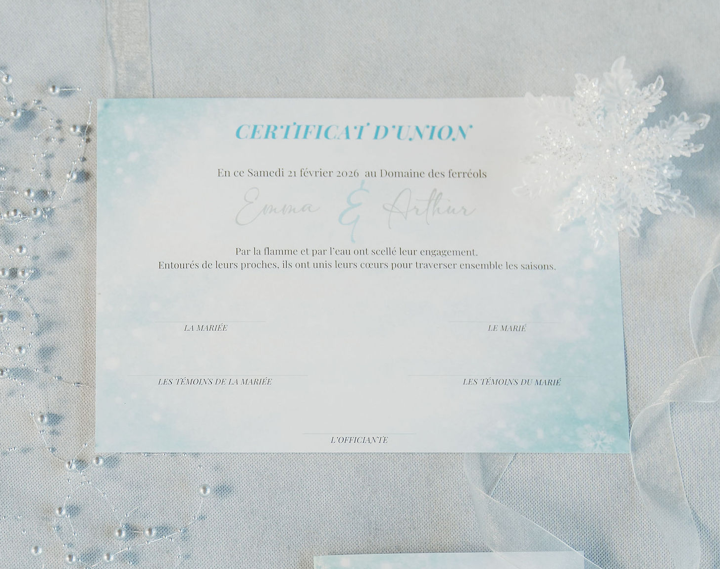 Le certificat symbolique – Givre d’Amour: Un souvenir précieux pour sceller votre union avec émotion.