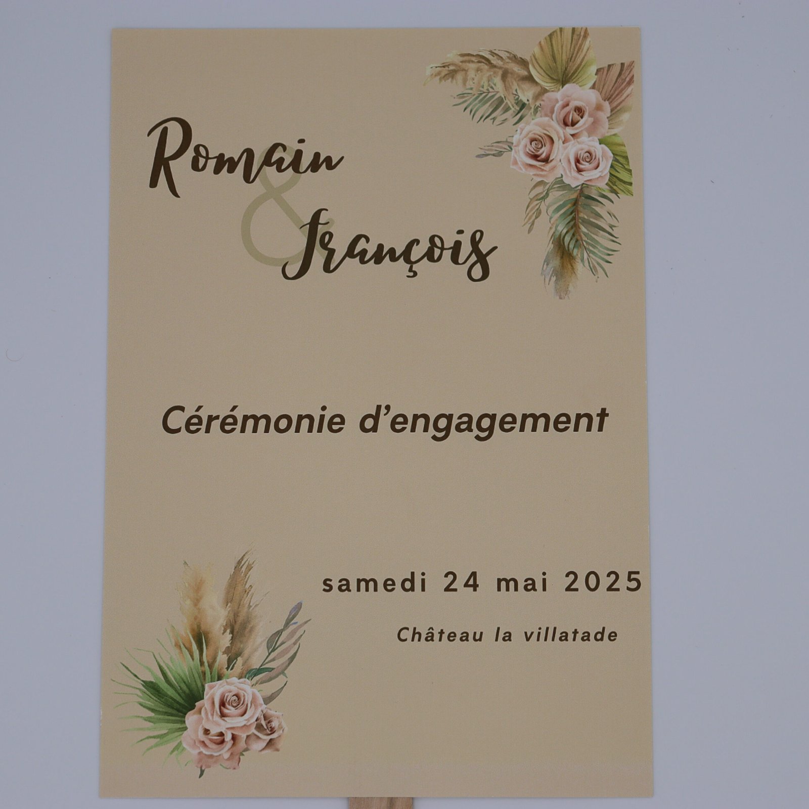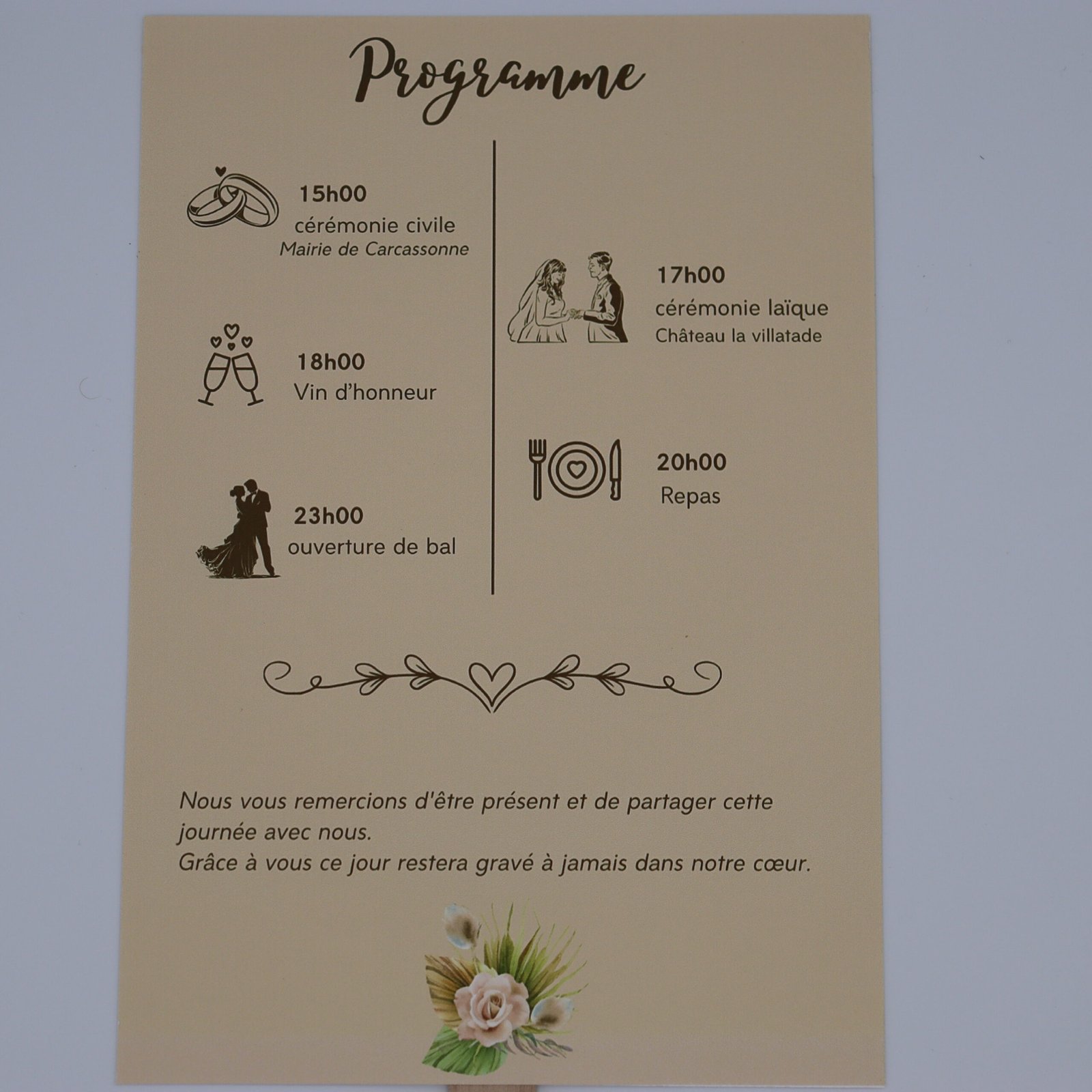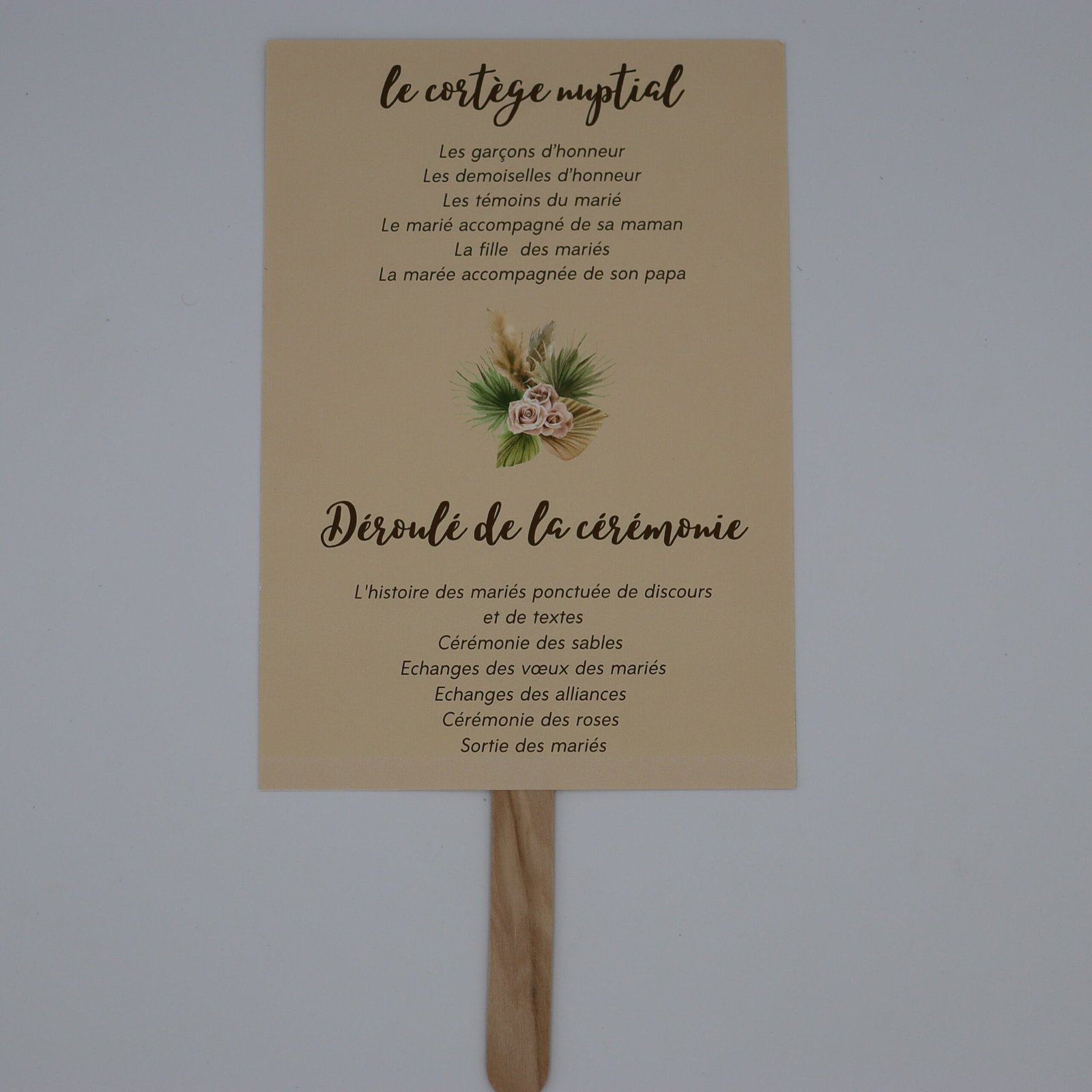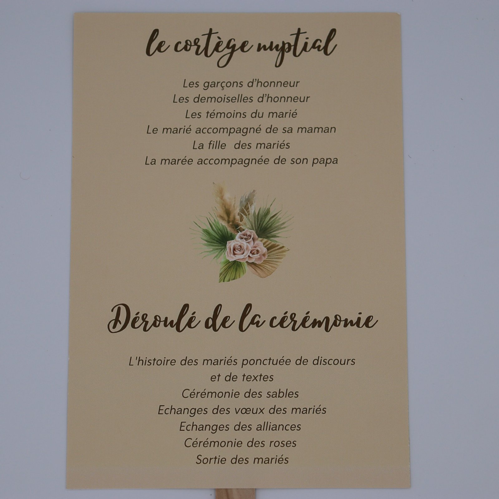- Éventail de cérémonie : pour guider vos invités tout au long du déroulé de la célébration laïque ou religieuse.