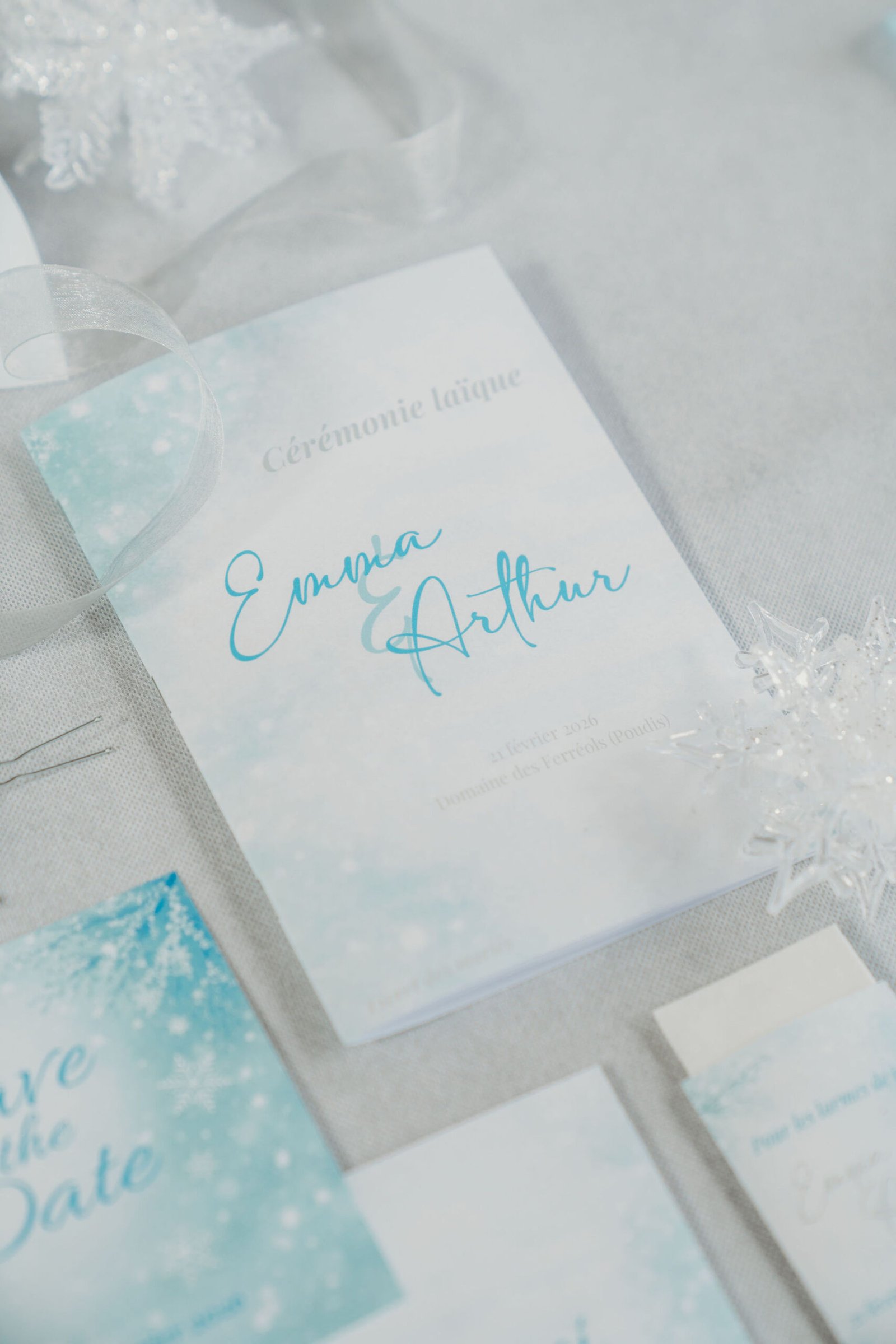 Livret de cérémonie – Collection Givre d’Amour: un guide élégant pour accompagner chaque instant de votre cérémonie.