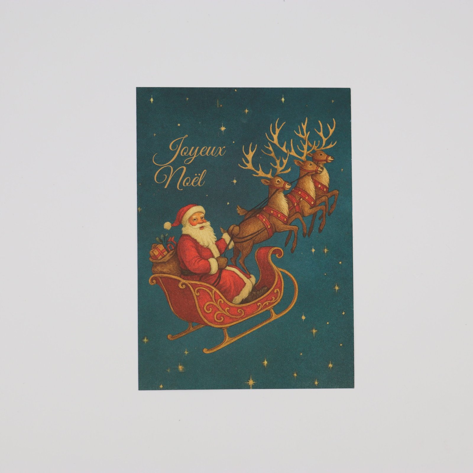 Pack Traîneau du Père Noël – 6 cartes A6 simples + 6 menus marque-place – fabrication artisanale.