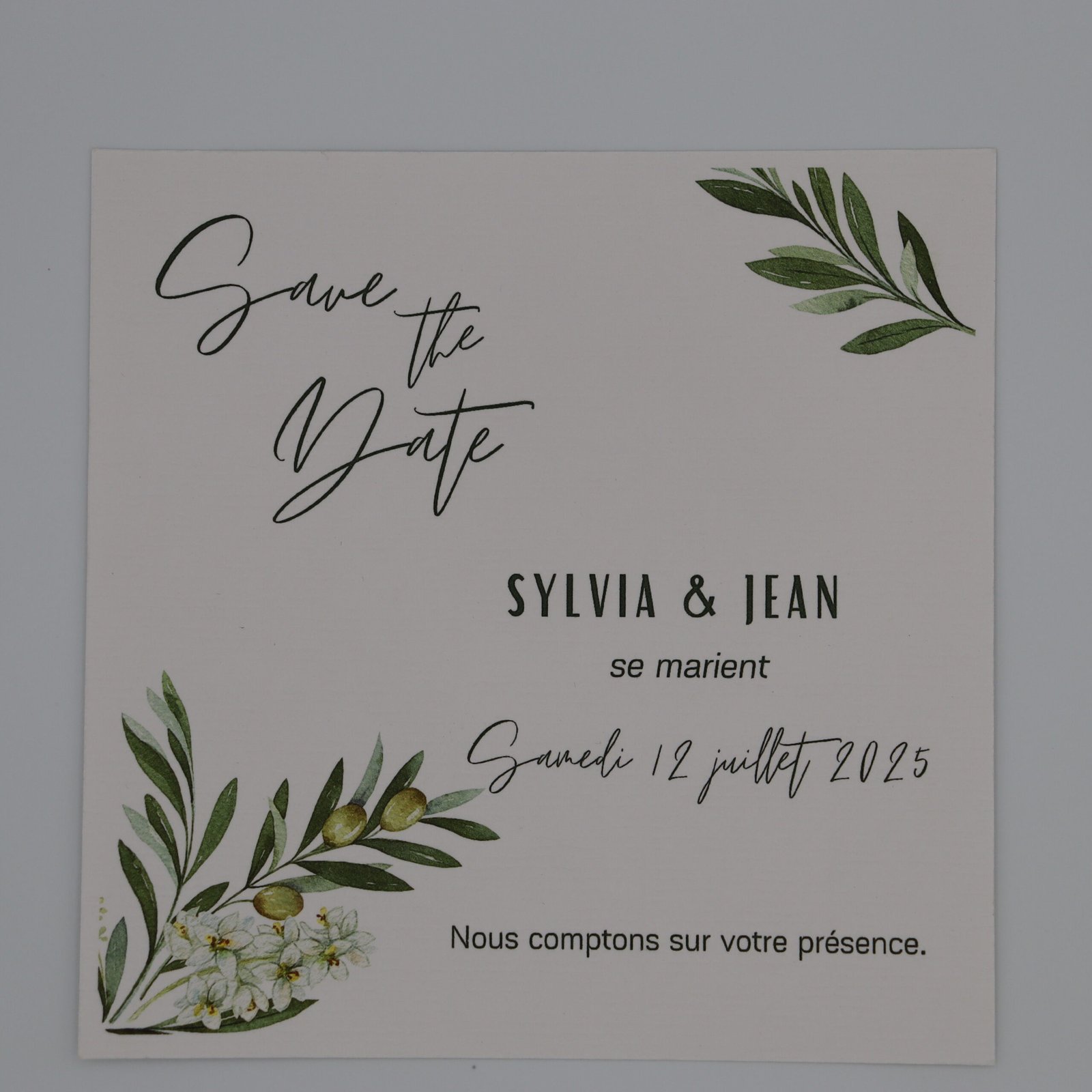 Caractéristiques du save the date mariage Éclat d’oliviers: