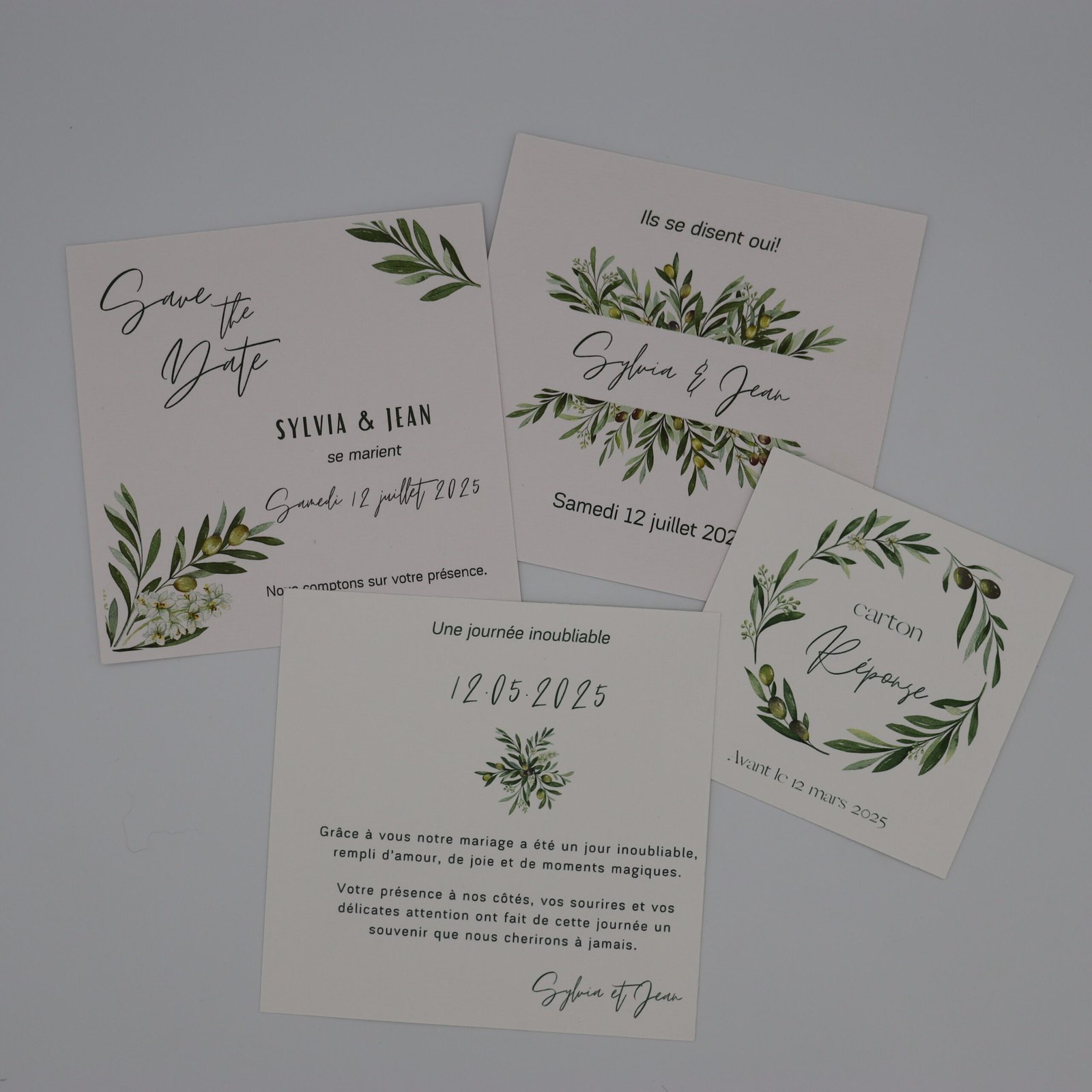 Save the Date – Collection éclat d’olivier: une annonce naturelle et raffinée.